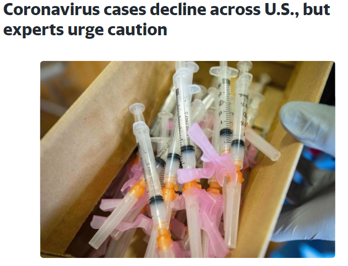 美国疾控中心(CDC)主任罗谢尔·瓦伦斯基指出,美国现在每天仍有近10万新增病例和1500人至3500人病亡。虽然各项指标在下降,“但它们是从一个非常高的高位下降的”。