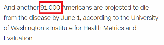 根据华盛顿大学健康指标与评估研究所(IHME)的最新预测结果,到今年6月1日,也就是在未来不到100天内,美国预计还将有9.1万人死于新冠肺炎。
