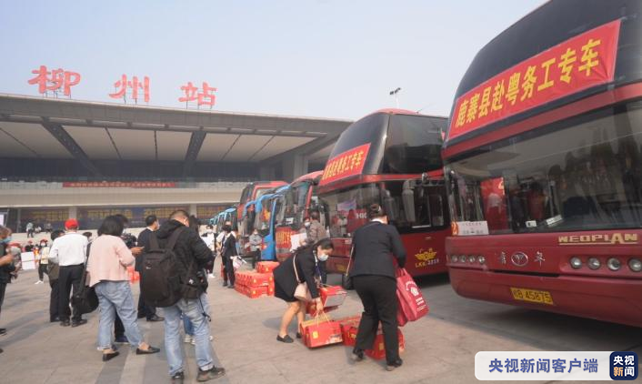 除了百色,23日早上,柳州市也开行了D2994次柳州至广州南的动车专列,“点对点”运送355名赴粤务工人员。柳州市各县区、柳州市人社部门准备了口罩、防疫知识手册、食物等物品,免费发放给务工人员。
