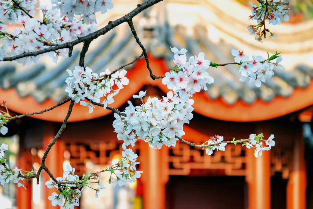 比如说,除了本文开头所提到的“武汉大学”,还有大理大学的樱花,无锡鼋头渚的樱花……如果你走不了那么远,也可以在自家门口的园林区域里,用特色建筑作为摄影背景来拍摄樱花。