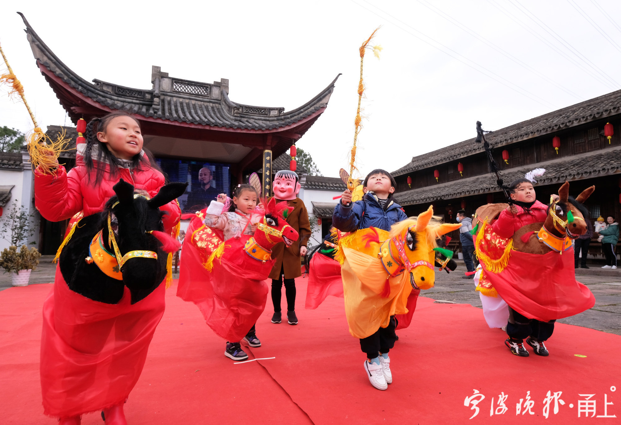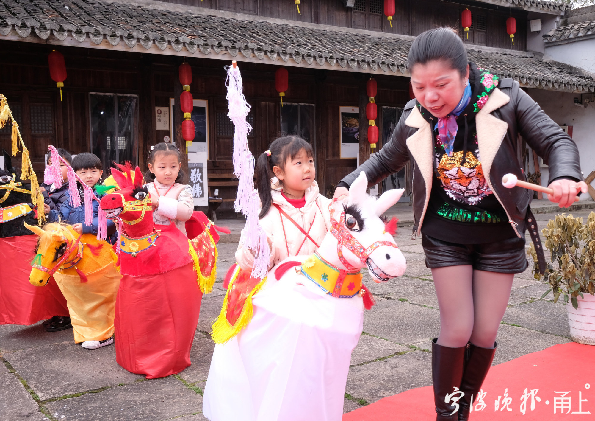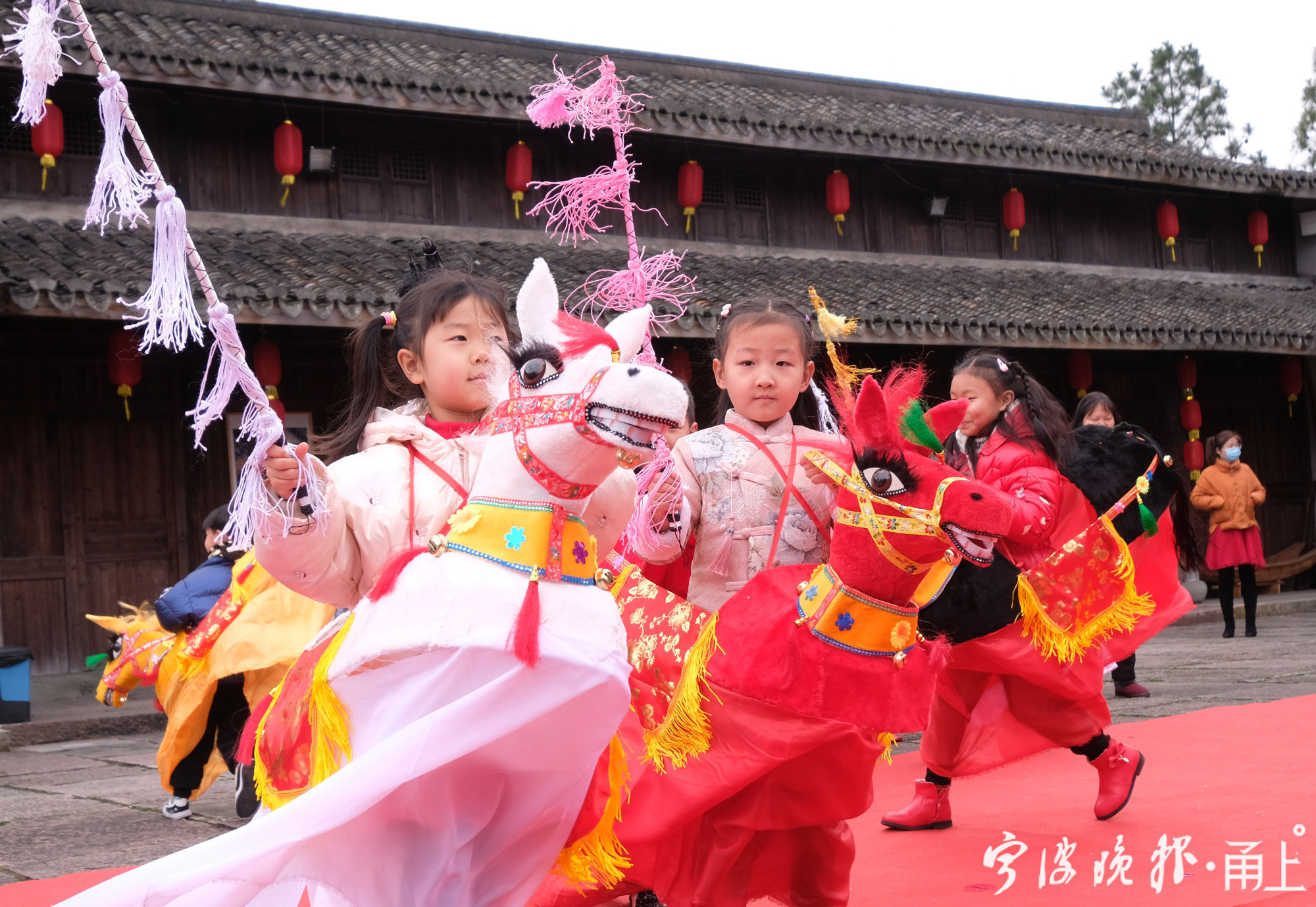 据鄞州非遗馆工作人员介绍,年前,非遗馆就策划跑马灯迎新年的活动,他们采购了8个颜色各异竹马灯,让前来参观的市民体验。今年,由于疫情防控的原因,许多外省务工人员选择在甬过年,非遗馆工作人员还特意联系横溪镇童心幼儿园里的孩子,让他们感受宁波的年味。