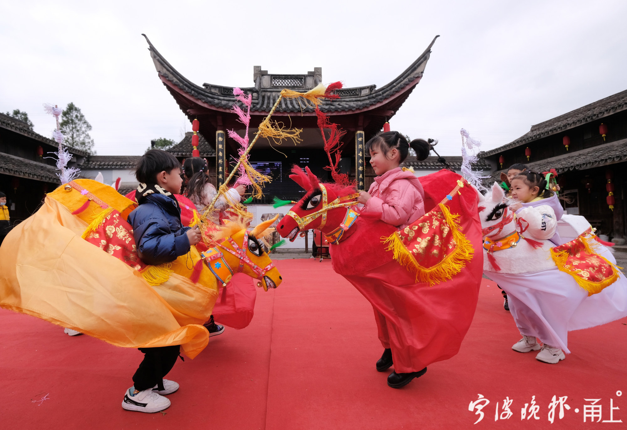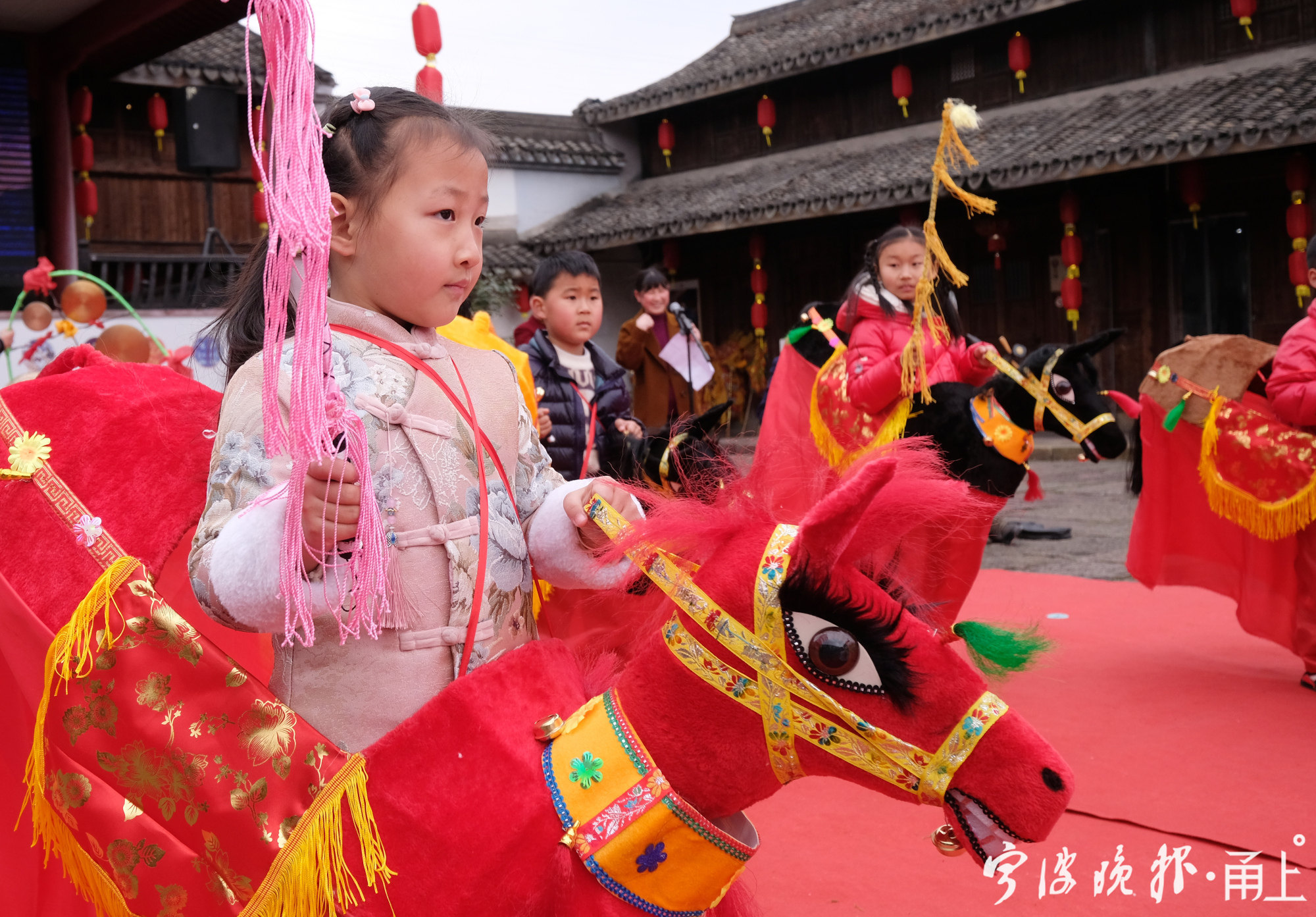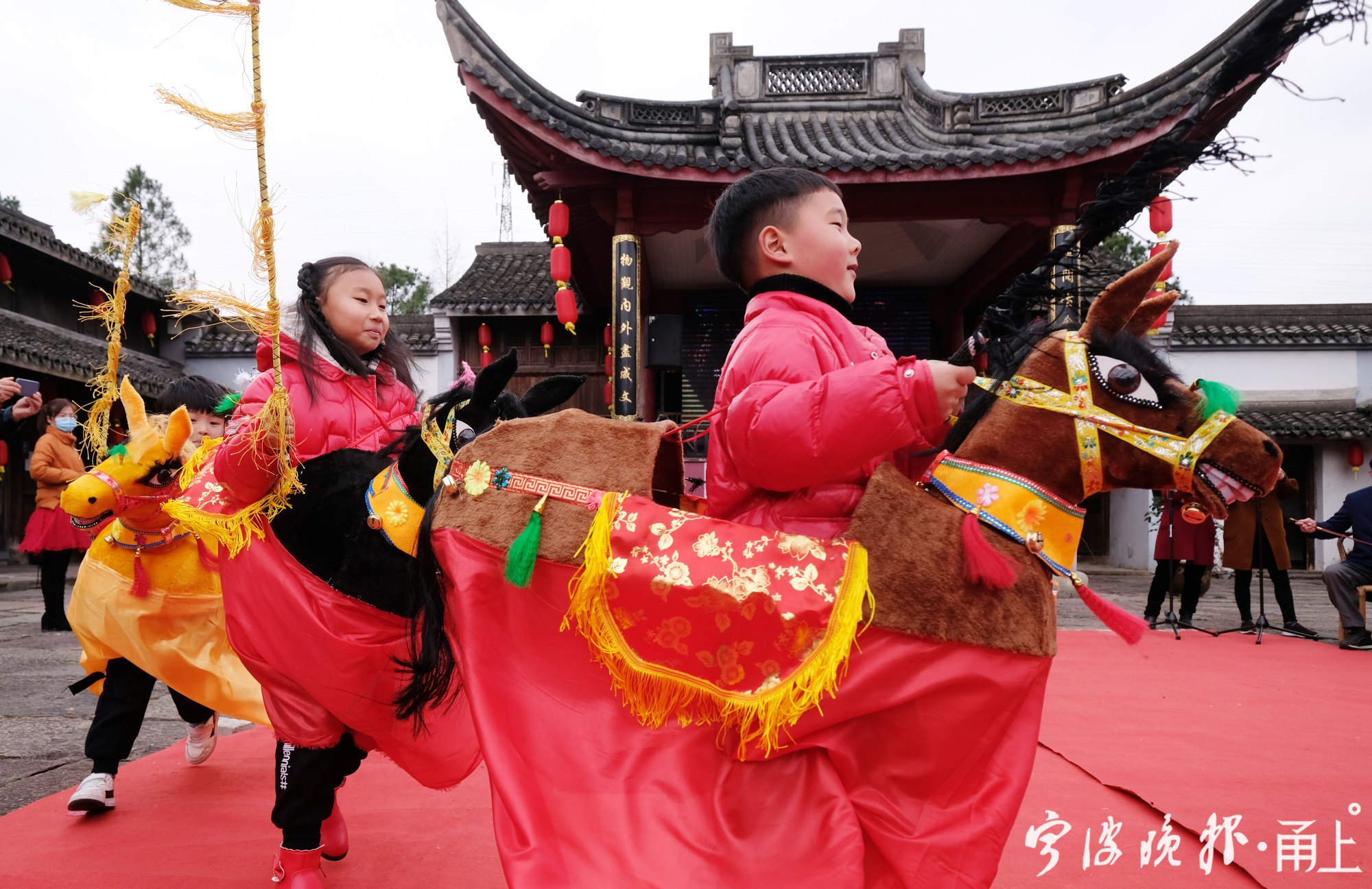 据鄞州非遗馆工作人员介绍,年前,非遗馆就策划跑马灯迎新年的活动,他们采购了8个颜色各异竹马灯,让前来参观的市民体验。今年,由于疫情防控的原因,许多外省务工人员选择在甬过年,非遗馆工作人员还特意联系横溪镇童心幼儿园里的孩子,让他们感受宁波的年味。