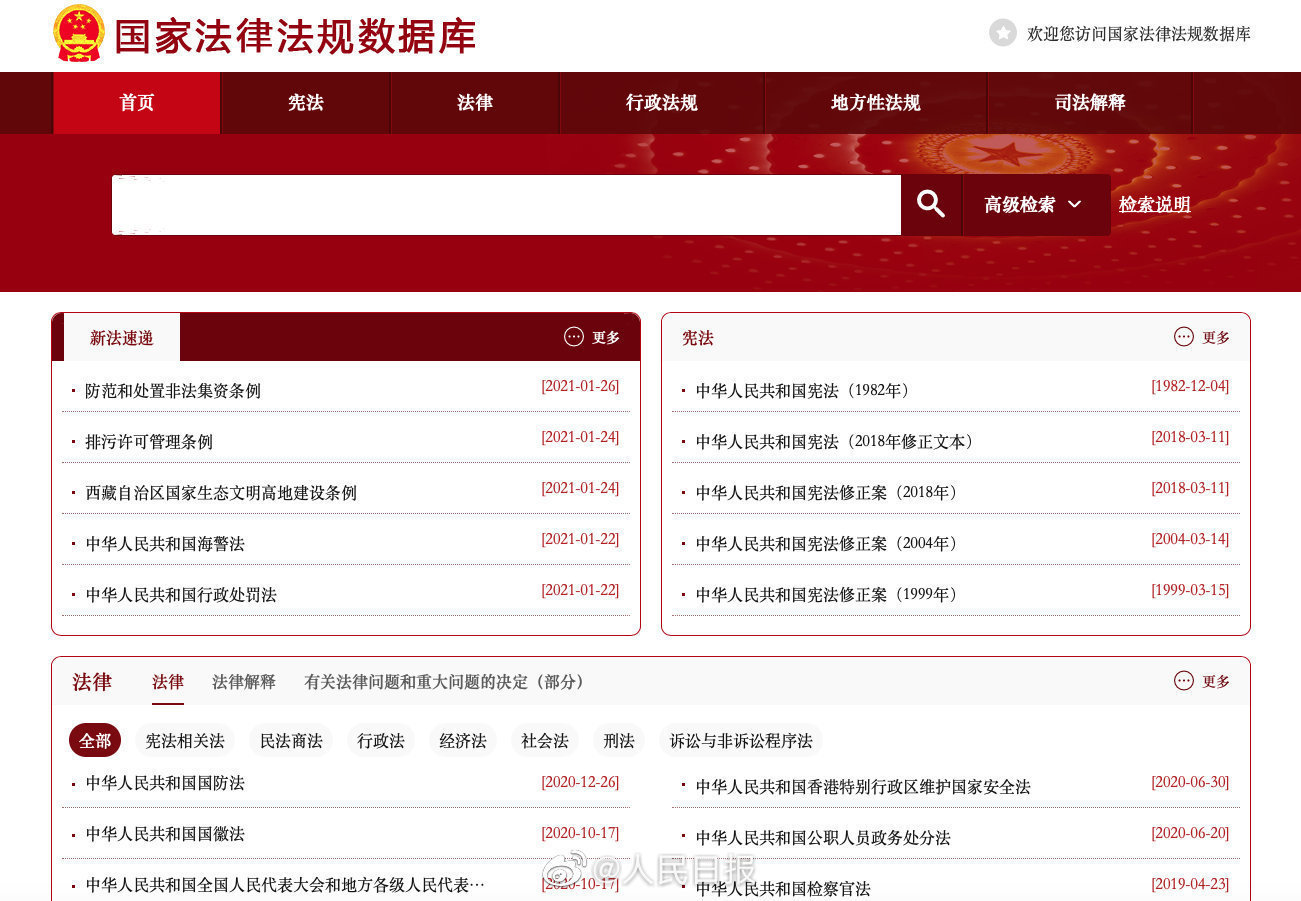 国家法律法规数据库的访问网址:https://flk.npc.gov.cn