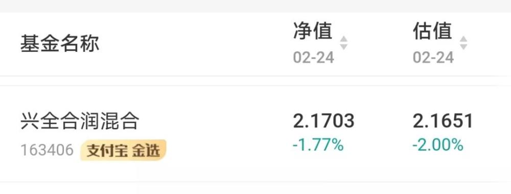 谢治宇管理的兴全合润混合,实际跌幅与估算净值之间有较大差距。2月24日,这只基金净值估算跌2%,实际净值跌幅1.77%。