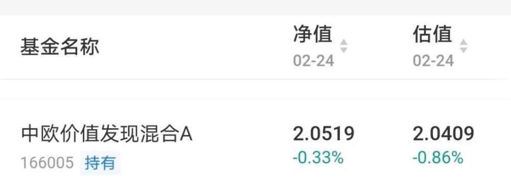 中欧基金曹名长管理的中欧价值发现混合,根据基金历史定期报告公布的持仓和指数走势预测,当天净值估算跌幅为0.86%,实际仅微跌0.33%。从前十大重仓股(截至2020年四季度末)来看,24日有五只个股上涨,另五只小幅下跌。