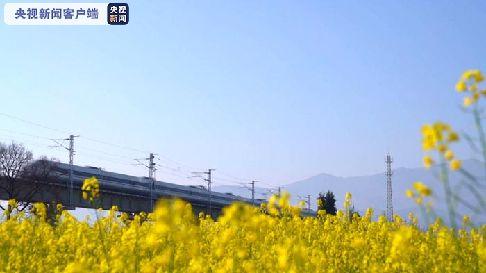 去年底建成通车的大理至临沧铁路恰好经过这里,一列列火车穿行于花海中,如同一班班开往春天的列车,绘就出一幅绝美画卷。