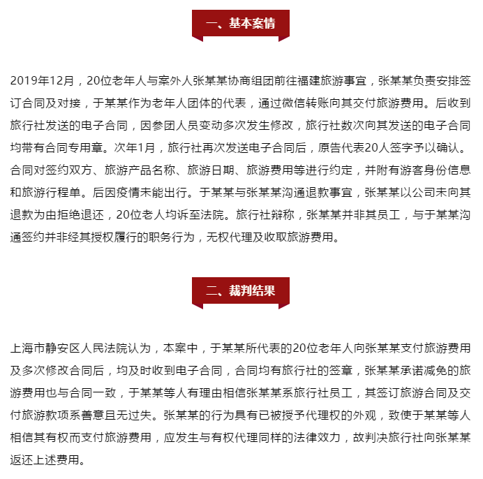 最高法提醒,老年人在签订旅游合同时,要注意审查相对人是否有相应的代理权和签约资质,并及时通过诉讼途径维护自身权益,对老年人维权、规范旅游行业具有积极的引导作用。