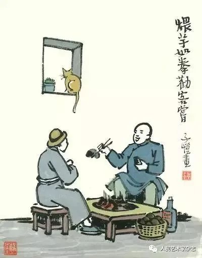 在丰子恺的画作中,在人们出生、嬉戏、盼想、劳作、聚饮、离散、衰老的时刻,都有猫的身影,它们与人一起游戏,共赏流年逸致,也同度艰辛与寂寞。