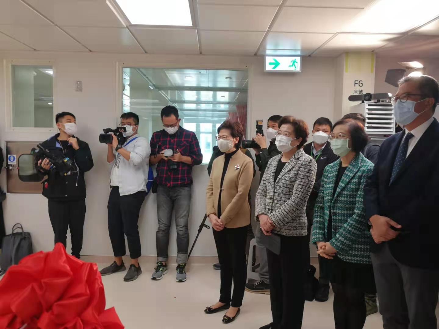 2月25日, 北大屿山医院香港感染控制中心举行正式启用仪式,香港特区行政长官林郑月娥等政府官员以及香港中联办相关负责人等嘉宾出席仪式并参观医院病房。