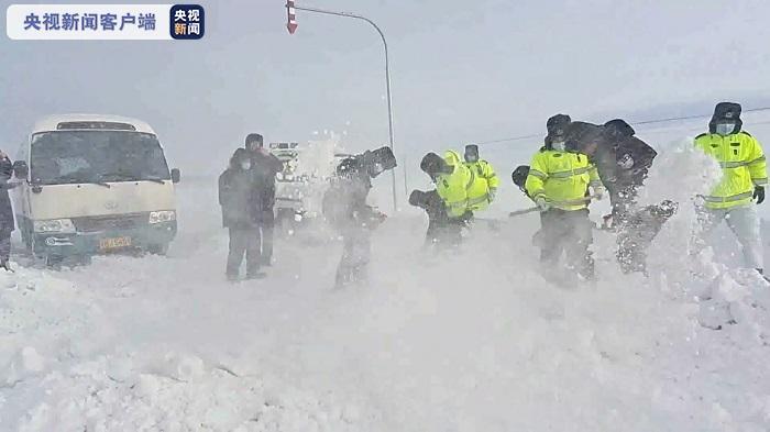 在巡逻过程中,交警在风吹雪路段发现有10多辆车被困,随即分组实施救援,并联系公路部门出动推雪车清理积雪路段。经过长达3个多小时的救援,被困16辆车及57人被救出。截至2月25日13时,当地的降雪天气仍在持续,风吹雪路段仍然处于交通管制中。(总台央视记者 信任 阿尔曼)