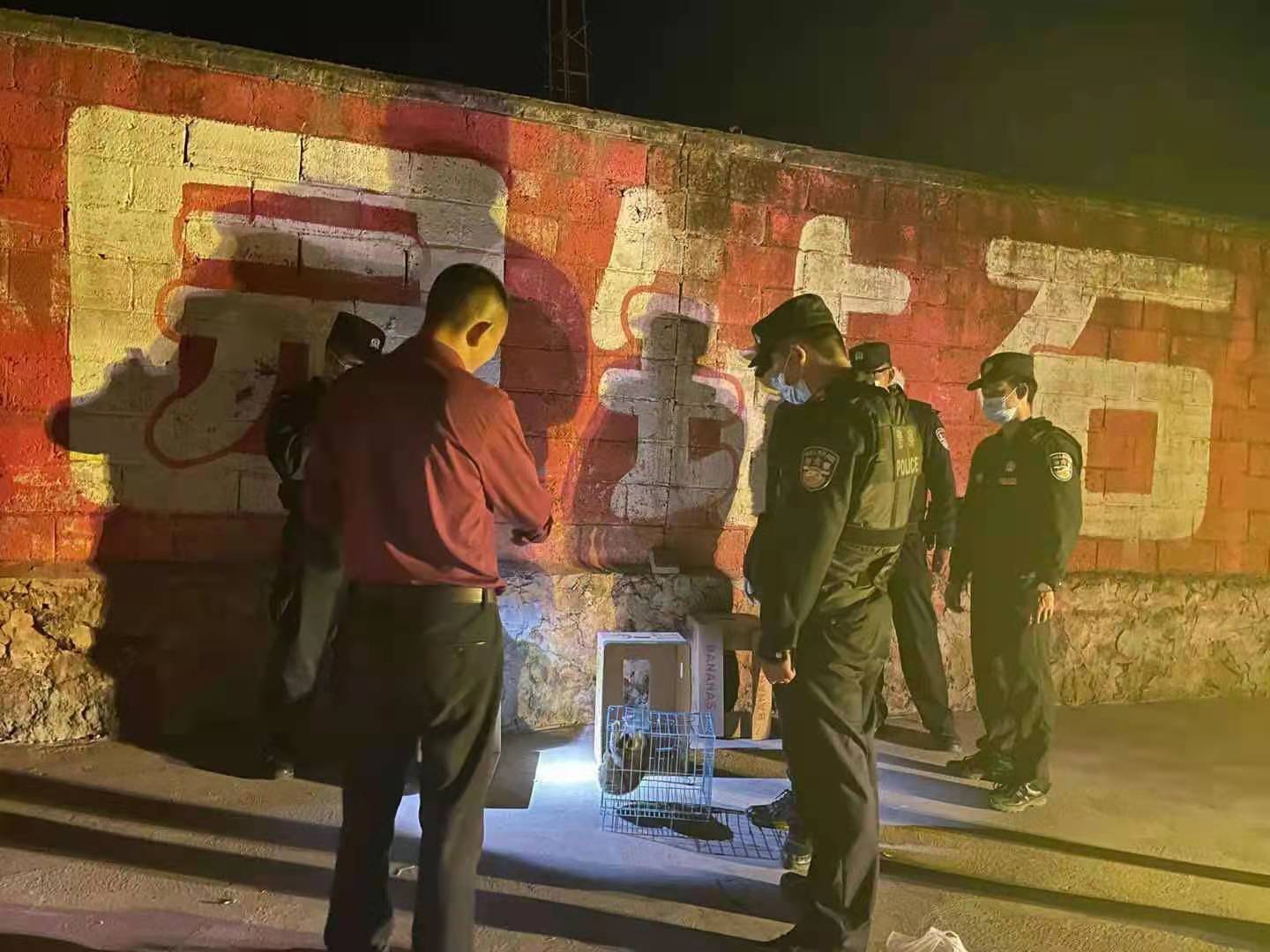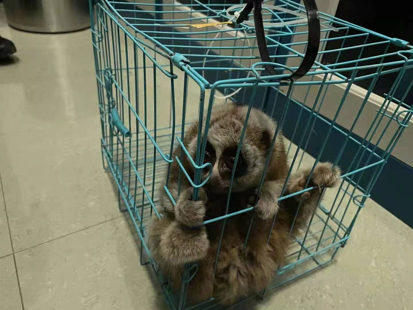 民警用笼子装起蜂猴(德宏州边境管理支队供图)