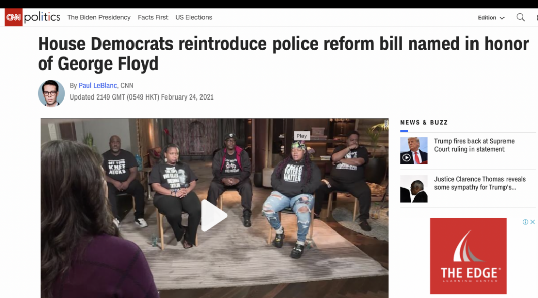 △CNN报道,众议院民主党人日前再度提出了以乔治·佛洛依德命名的警务改革法案