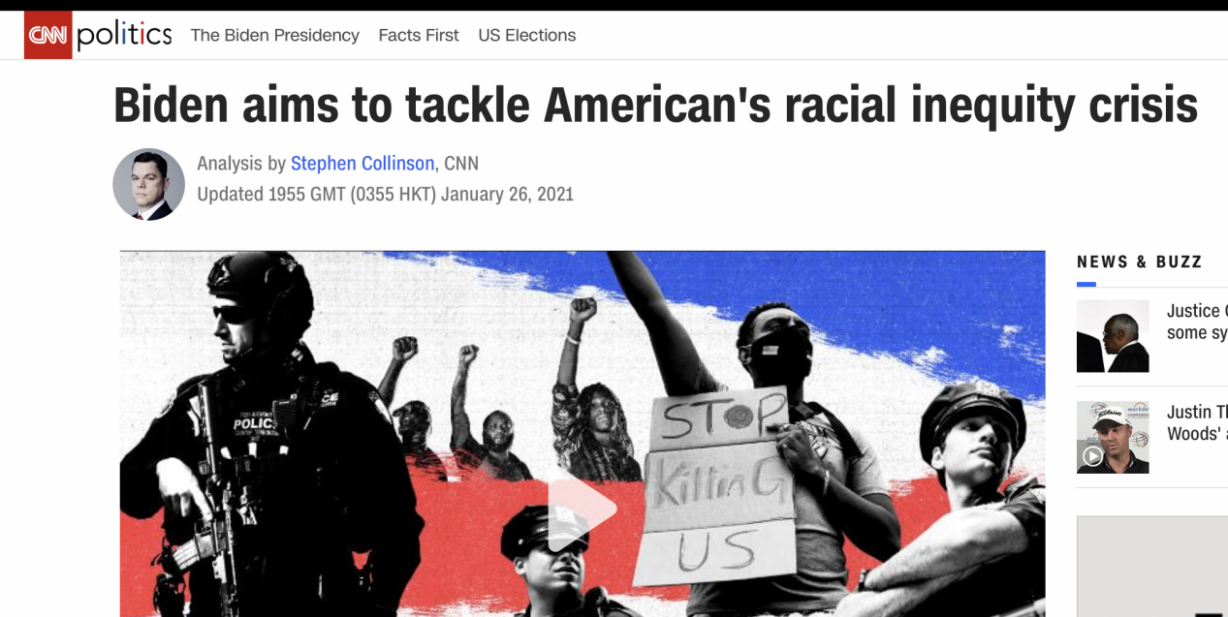 △CNN称,美国总统拜登解决种族不平等问题的任务非常紧迫
