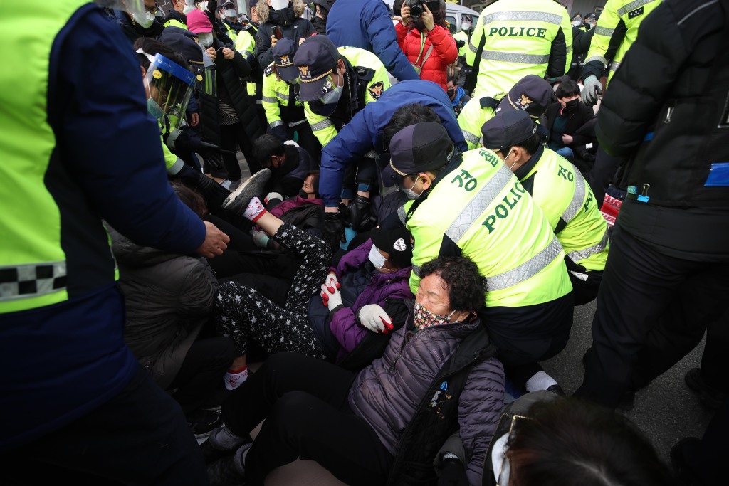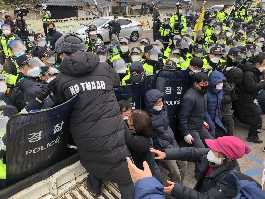 海外网2月25日电据韩联社报道,当地时间25日上午,韩国国防部向庆尚北道星州郡“萨德”基地运输物资,当地居民誓死抗议,遭警方强制疏散,导致4名民众昏厥或遭受跌打损伤。最终,共有42辆运输物资的车辆驶入基地。这是时隔34天,韩军再次向“萨德”基地运输物资。