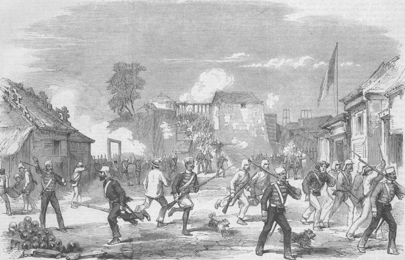 1856年广州城战役中英军掠夺广州军粮仓。图/维基百科