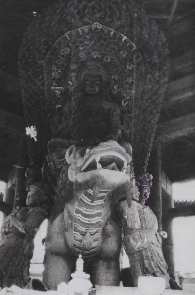 圆明园正觉寺文殊亭内文殊菩萨全身照片。(1920年代拍摄)