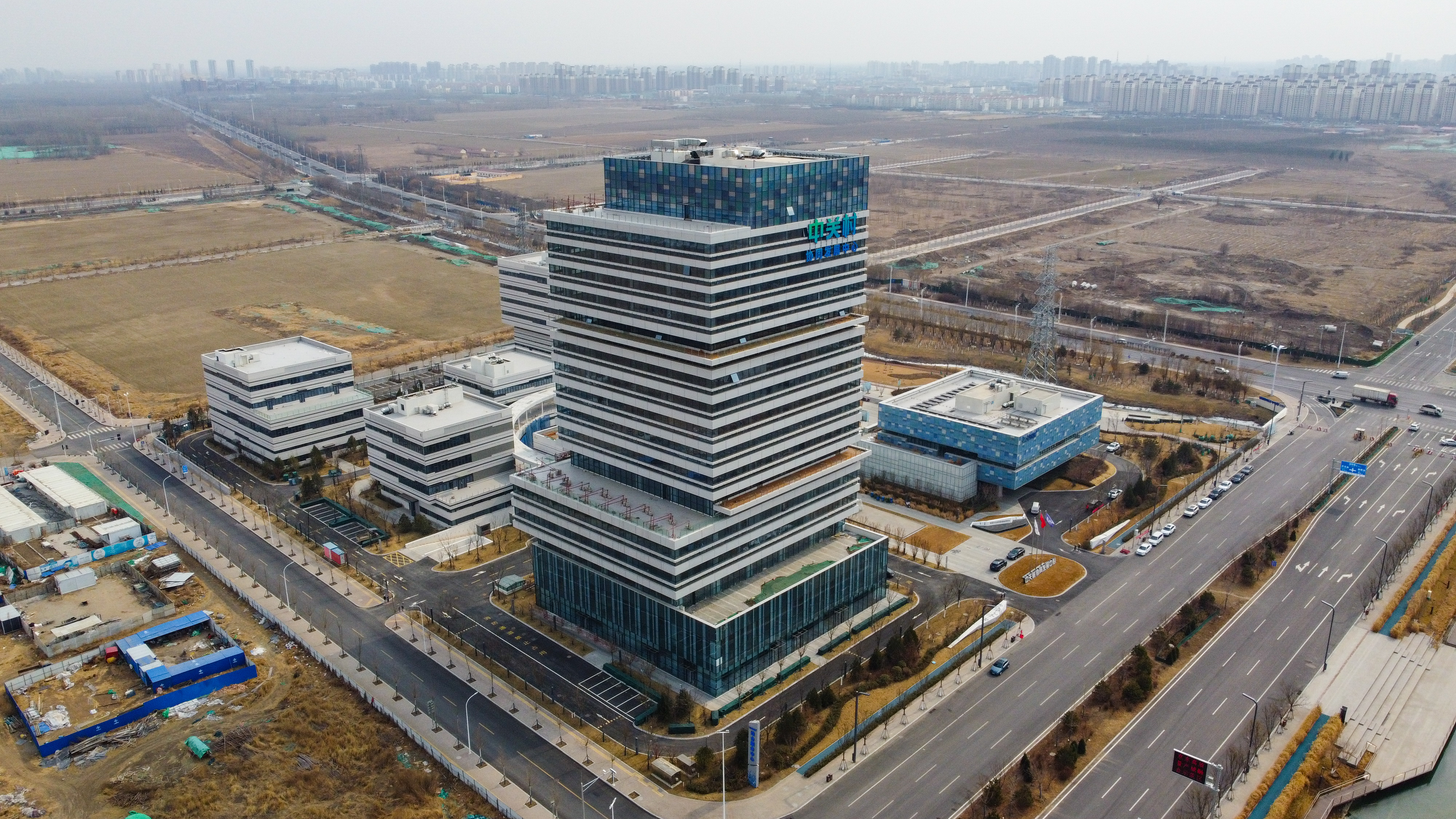京津中关村科技城协同发展中心大楼外景。无人机照片,新华社记者孙凡越摄