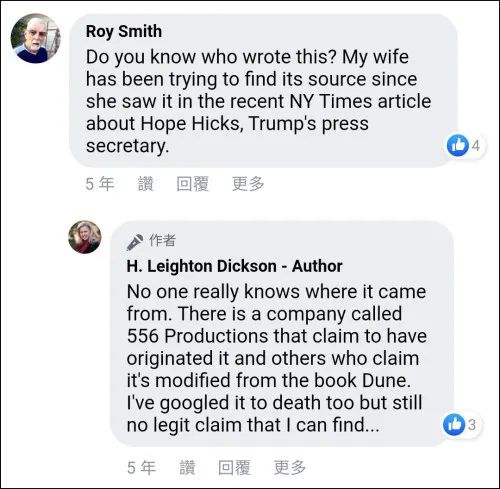 2016年,美国大选期间,特朗普竞选团队的新闻秘书霍普·希克斯对媒体说过这句话,但她没有解释出处,杰克·雷明顿随后自称是原作者。
