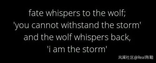此外,“命运,对勇士低语:你无法抵御风暴。勇士低声回应:我就是风暴。”也并非陈滢原创。