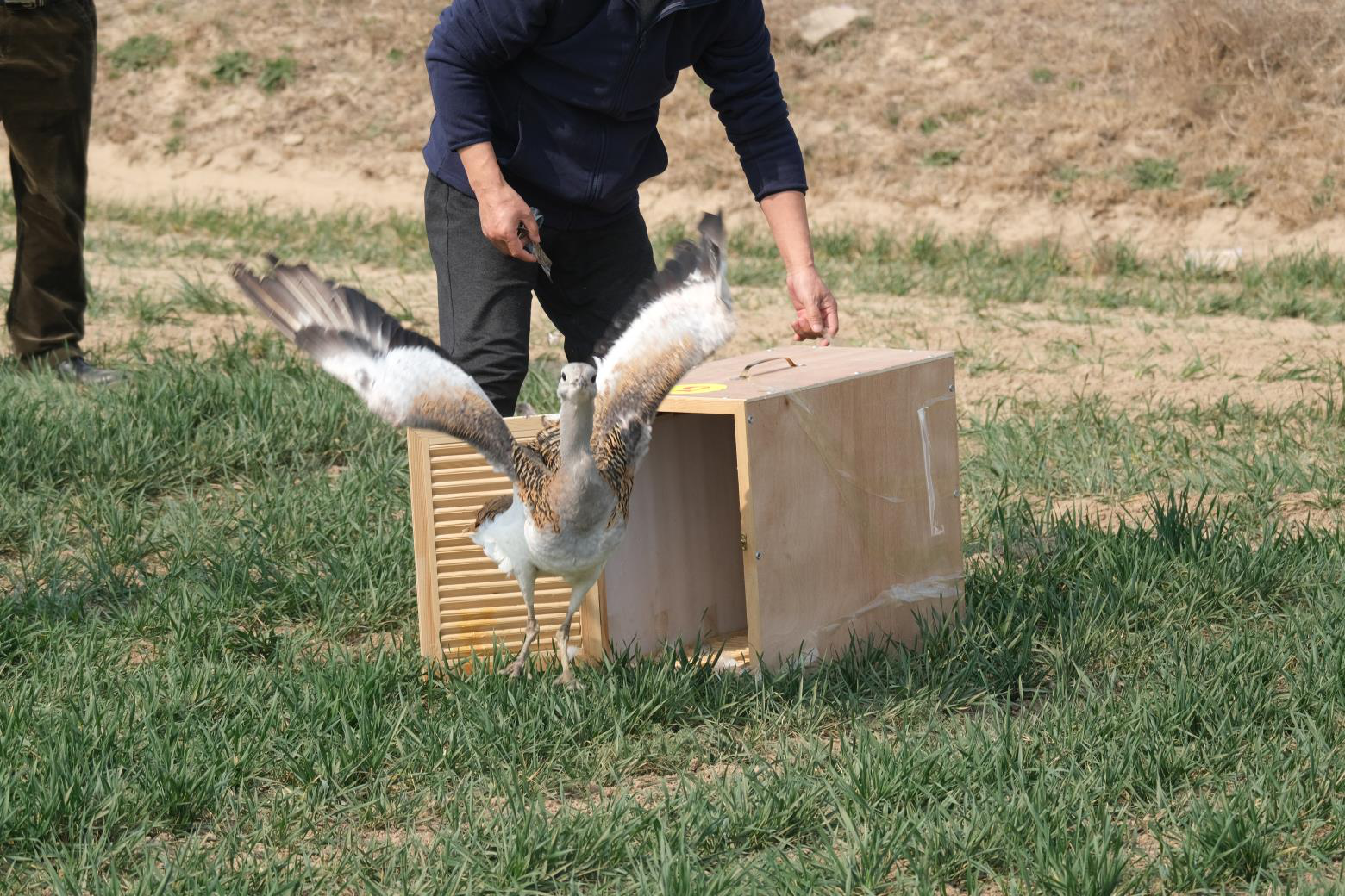 大荔黄河湿地是候鸟迁徙的重要驿站和越冬地。据悉,这只大鸨由于翅膀受伤于2月19日被救护,经过陕西省珍稀野生动物救护基地人员精心治疗和护理,它的健康和体能逐渐得到恢复。专家评估其符合放飞条件。