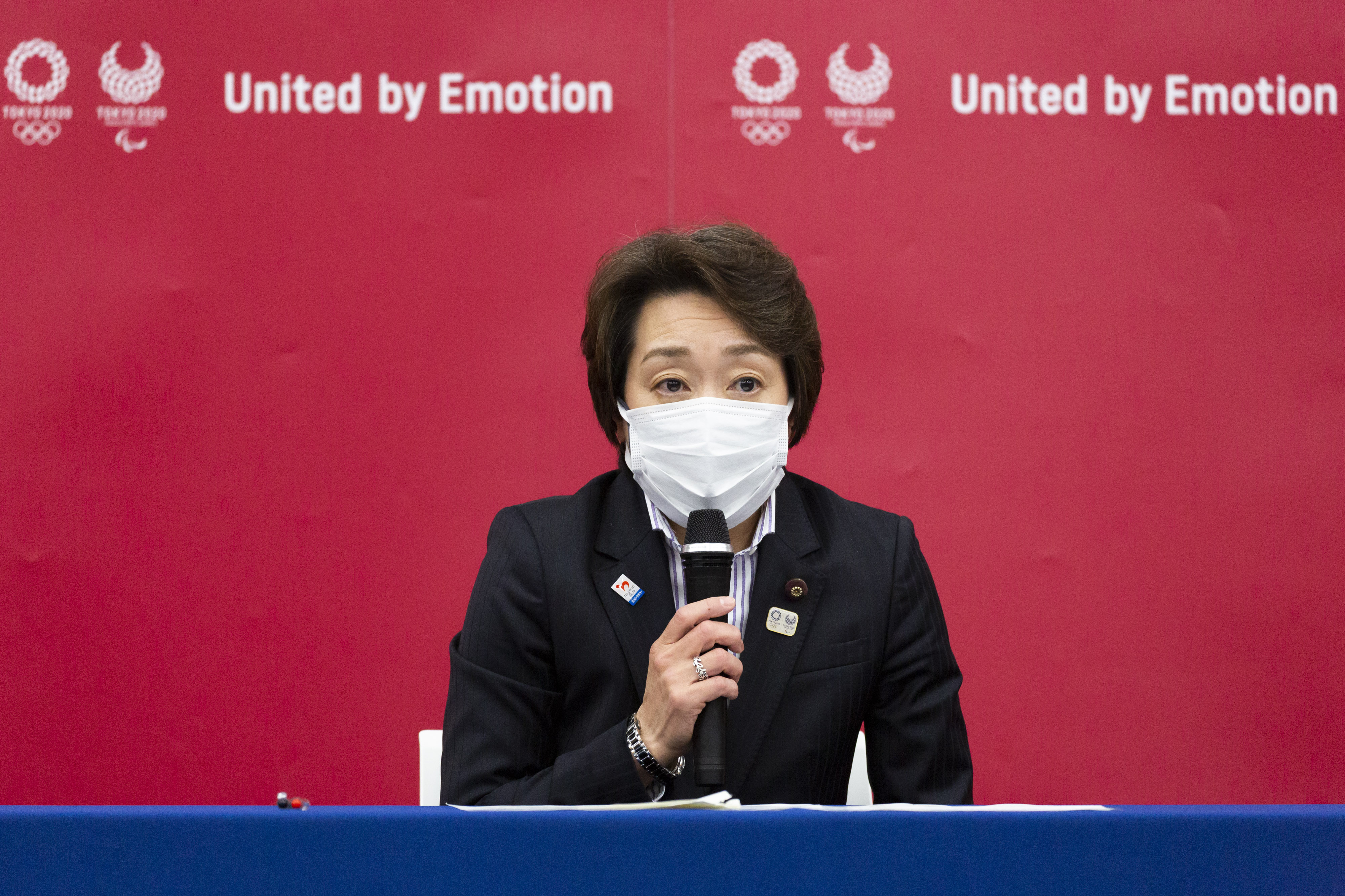 东京奥组委主席桥本圣子在被任命为主席后出席记者会。新华社/POOL/山崎裕一