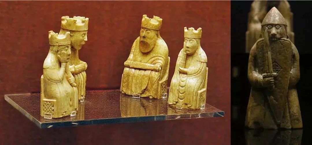 但只要俯身细察,你就会明白为什么英国人将其视为最重要的国宝之一:小小的棋子不仅保存完好,工艺精湛,更有着让人难以忘怀的造型——王后,皱着眉头托腮苦思;国王,正襟危坐怒目相向;士卒,双目圆睁,还用牙齿咬住了盾牌。这些行走在红白格间的棋子们,是如此精巧又趣味十足。