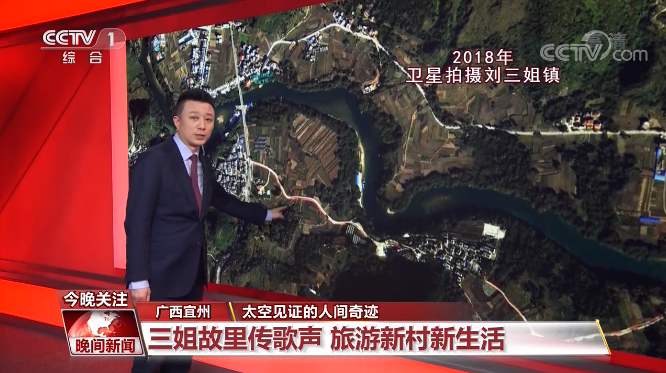 生态兴,产业强,小康生活又美又甜。下一站,我们要到广西看看。2020年,广西最后8个贫困县完成脱贫摘帽。位于广西宜州的刘三姐镇在短短数年间,经历了山乡巨变。这是2014和2018年的卫星图像对比图。您看在绿水青山之间最明显的变化,是多了一条红色的的塑胶自行车休闲绿道。这条休闲绿道把会仙山景区、刘三姐故里景区、壮古佬景区等宜州特色景点景观串联起来,当地为啥要花大力气建起一条绿道?又给当地人带来什么呢?一起去了解。
