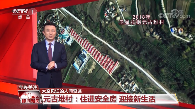 第二站,我们来到甘肃定西的元古堆村,这里过去长期村落凋敝,人称烂泥沟,是典型的深度贫困村。从这张2010年拍摄的卫星图像可以看出,当时村民住的大多是土坯房。而2018年的卫星图,非常明显地看到,在原来的空地上,出现了一排排白墙红顶的安居房,新建的学校、养老院、文化广场就在不远处。住进这样的新房子是怎样的感受呢?来听听村民们怎么说。
