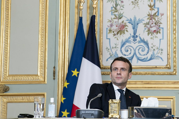 △图片为马克龙参加欧盟特别视频峰会,来自欧洲理事会网站