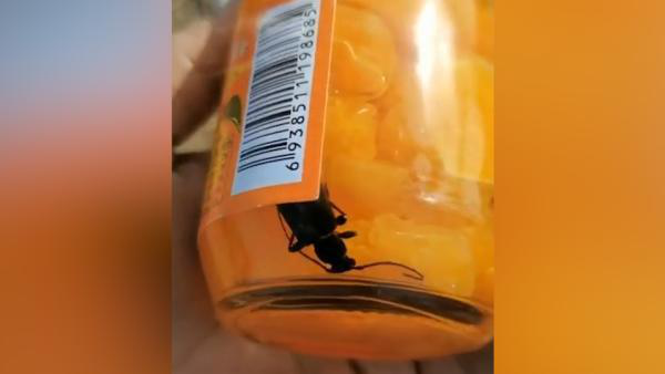 ·男子曝糖水柑橘罐头现“巨虫”,厂家:系伪造,已联系市监所。