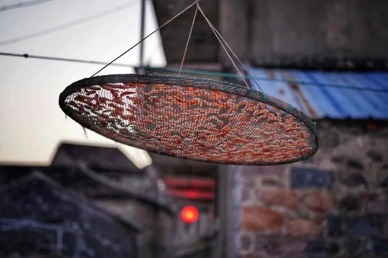 鲜叠渔村的冬夜,仿佛比古代的长夜来得更早,径无人踪,灯火如豆。石头屋门赶在夕阳离去前,收进了尚未干透的鱼鲞、虾干、酱肉,收进了所有的脚步声和几声咳嗽,还收留了几缕前来取暖的海风,早早吹熄了一切声响。
