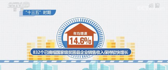 增值税发票数据显示,“十三五”时期,832个已摘帽国家级贫困县企业销售收入保持较快增长,年均增速达14.6%。其中,2016年—2018年增速分别为18.6%、11.7%和8.5%,2019年增速提升至18.7%。