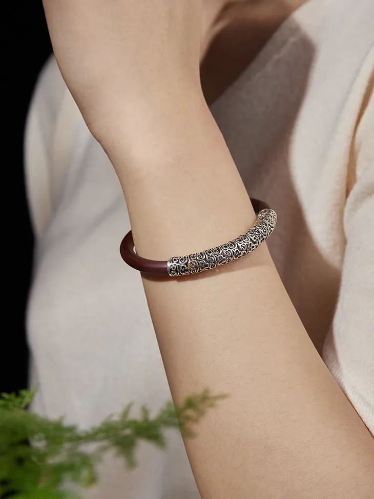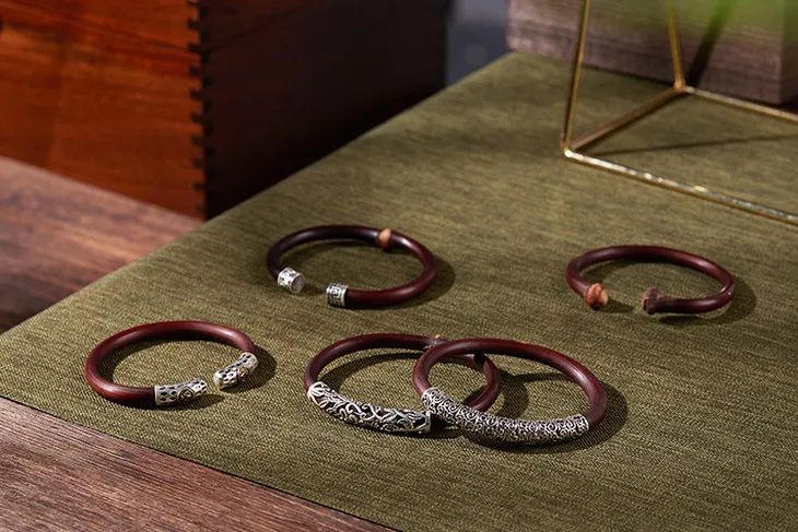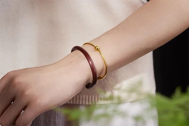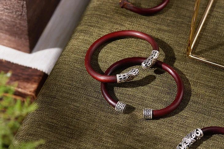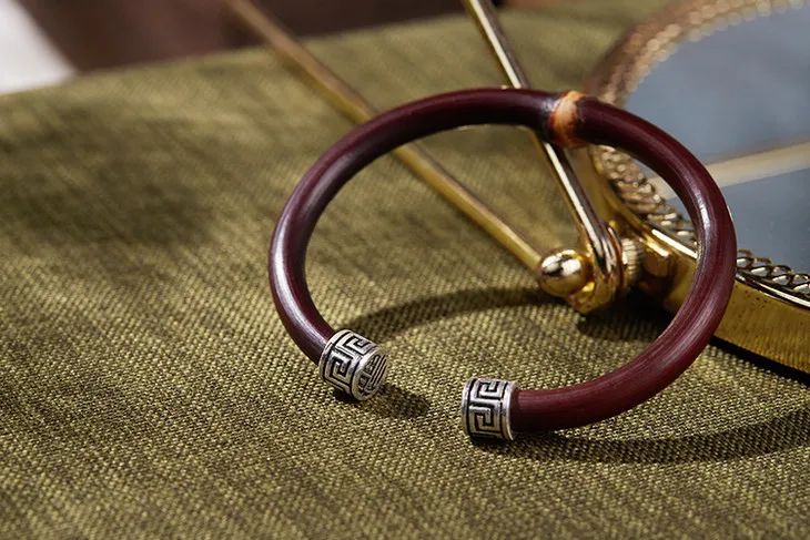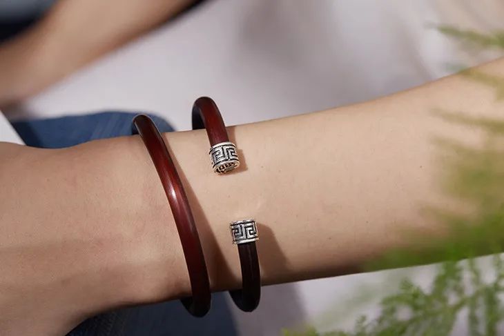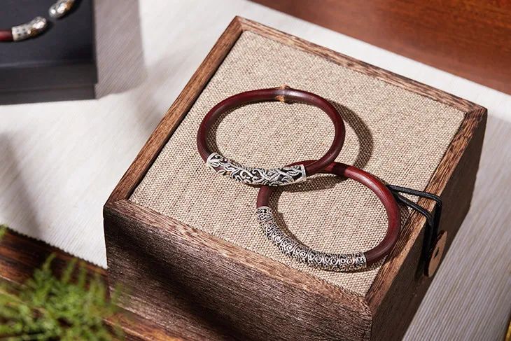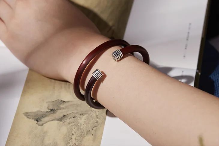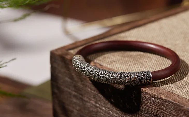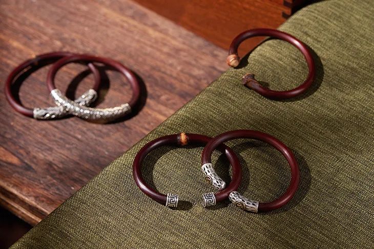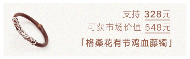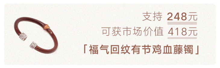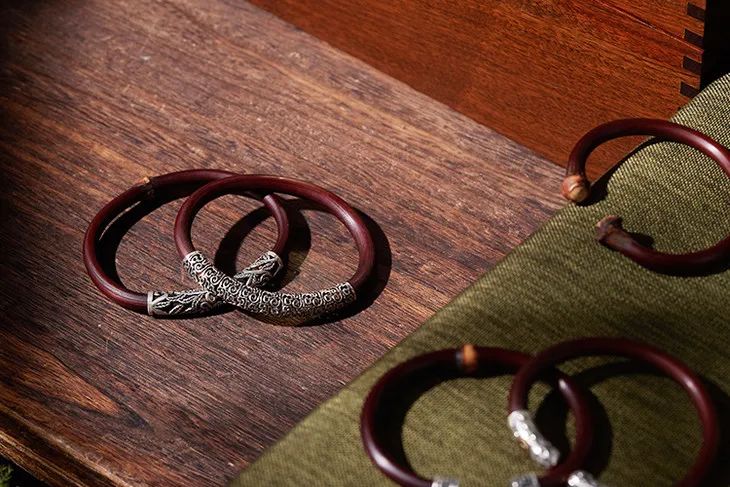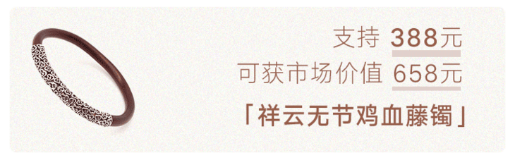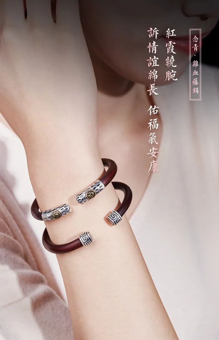 “何以致契阔?绕腕双跳脱。”一双鸡血藤镯,既佑平安,更祝幸福。