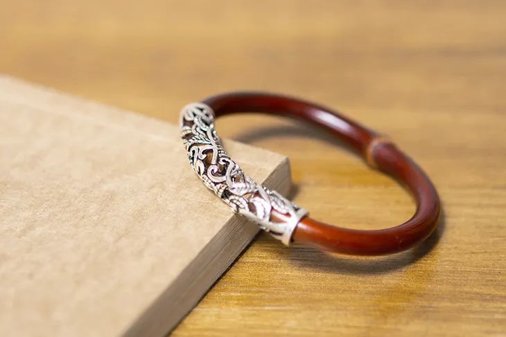 银箍藤镯,媲比足银,佩戴起来更有实在手感。且艳红之间添上月华光辉,秀雅绝俗。