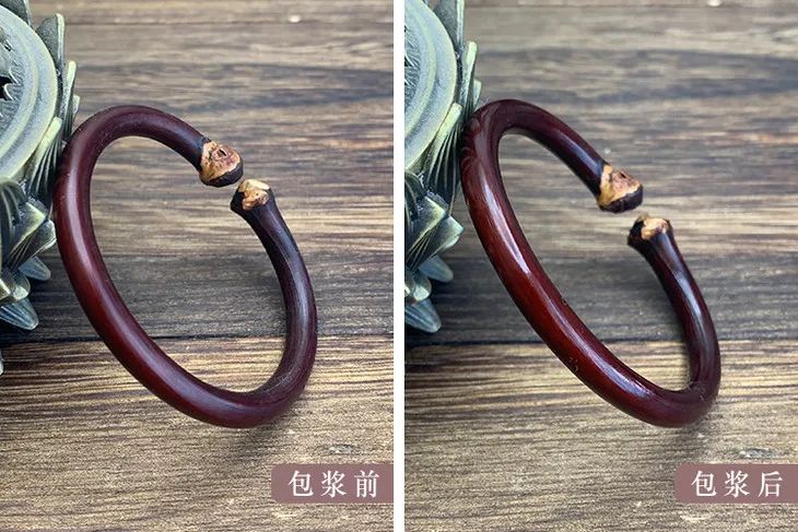 可鸡血藤原藤干瘪率高,风干时,100根原藤,往往只有10根合格。这10根中,还要挑出品相好才能制镯,可谓千里挑一。
