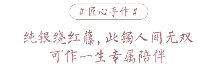 纯银饰点,有光照来:藤的红,银的白,交相呼应,像霞光未散月探头,绕腕美成画。