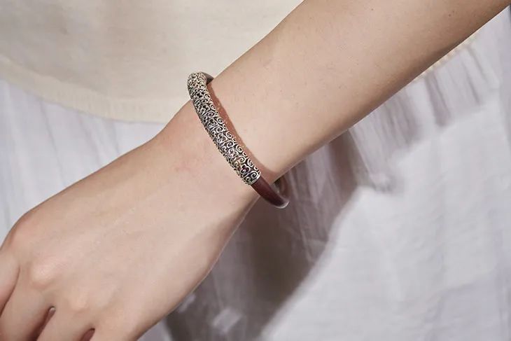 繁复的祥云图腾,灵感源自故宫藏品《剔犀如意云纹方盒》,寓意吉祥如意。古朴之中,颇具宫廷大气。绕腕而戴,气质典雅高贵。