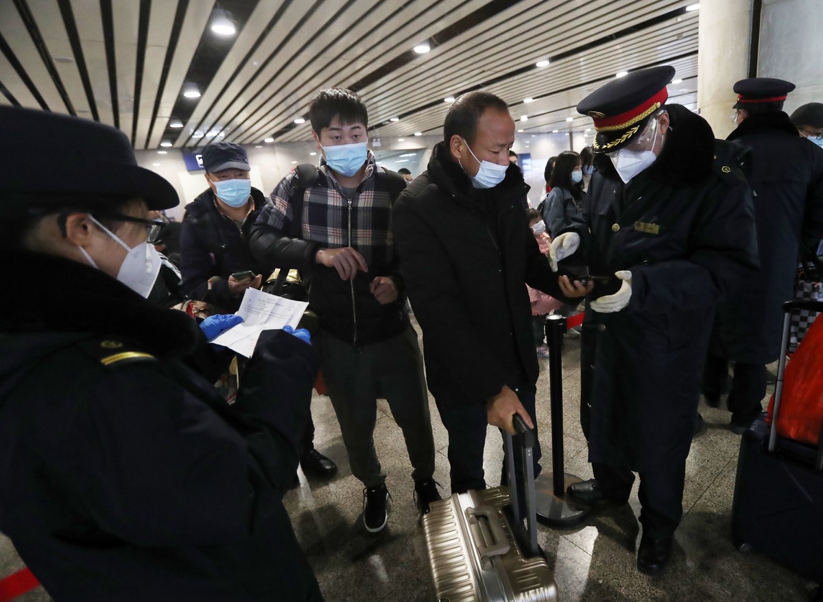 北京西站,铁路工作人员正在查验出站旅客核酸检测证明。新京报记者 王贵彬 摄