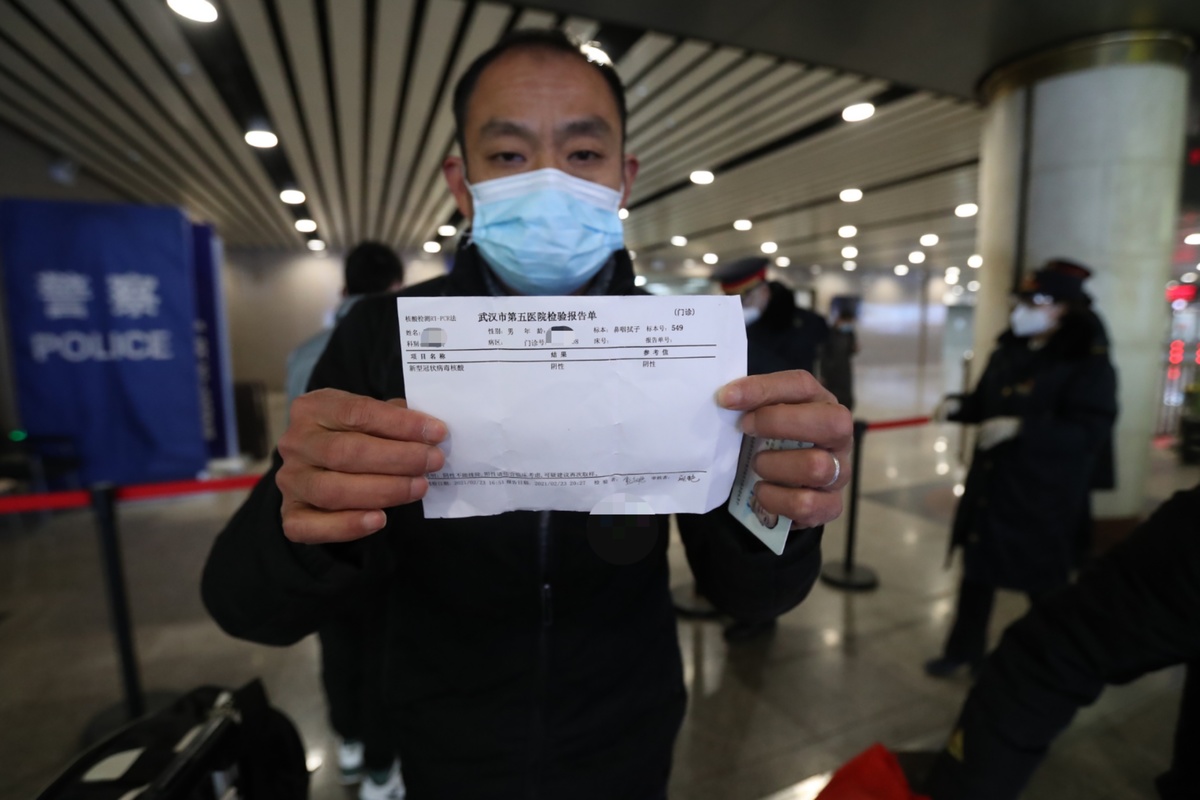 由于目前返京旅客的数量不多,并没有因为查验核酸检测证明而出现排队现象。记者注意到,旅客出示的核酸检测证明并不一致,有的是纸质版,有的是手机内的电子信息。铁路部门工作人员对不同类别的证明进行逐一核验。