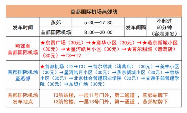 据机场巴士官方平台微信公众号消息,为方便首都国际机场旅客出行,北京民航机场巴士将于2021年3月1日恢复首都国际机场燕郊线。进京的乘客需出示健康码绿码并持有7日内有效核酸检测证明。具体发车时间以当天实际运营情况为准。