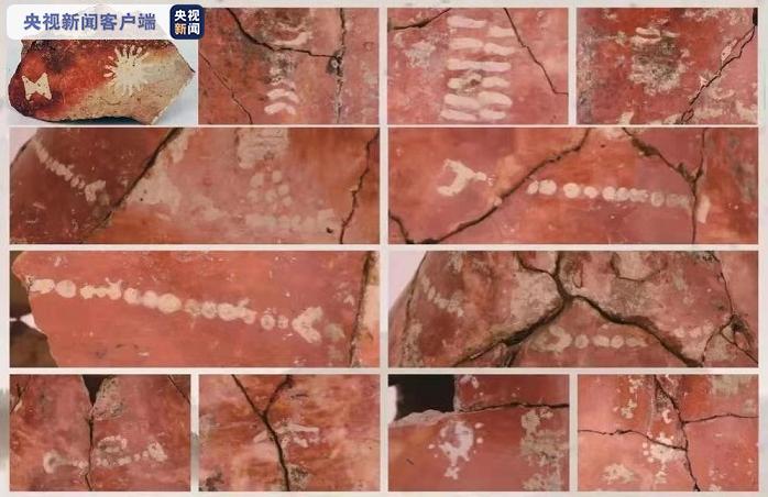 在红衣陶罐上还烧制了其他颜色的图符,说明有了两种色彩。这些陶器也是世界上最早的彩陶。