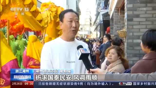 湖州德清市民 屠魁耀:每年正月十五我们乾元都要举行舞龙灯会,祈求国泰民安,风调雨顺。