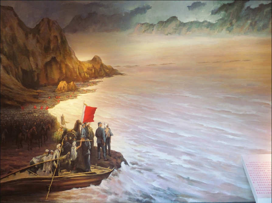 在南茹村八路军总部旧址史料展厅序厅,一张“八路军挺进华北抗日前线”大型油画,将人带到了那段烽烟四起的峥嵘岁月。