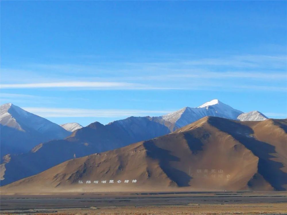 步出康西瓦烈士陵园,对面喀喇昆仑山绵延的山体上,巨大的“弘扬喀喇昆仑精神”“砺兵天山、亮剑昆仑”标语铭刻其上,在蓝天白云的映衬下分外醒目耀眼,为国捐躯的烈士们已经化作共和国西部边关的巍巍山脉,融入一代代边防官兵用青春和生命守卫祖国领土的精神中。