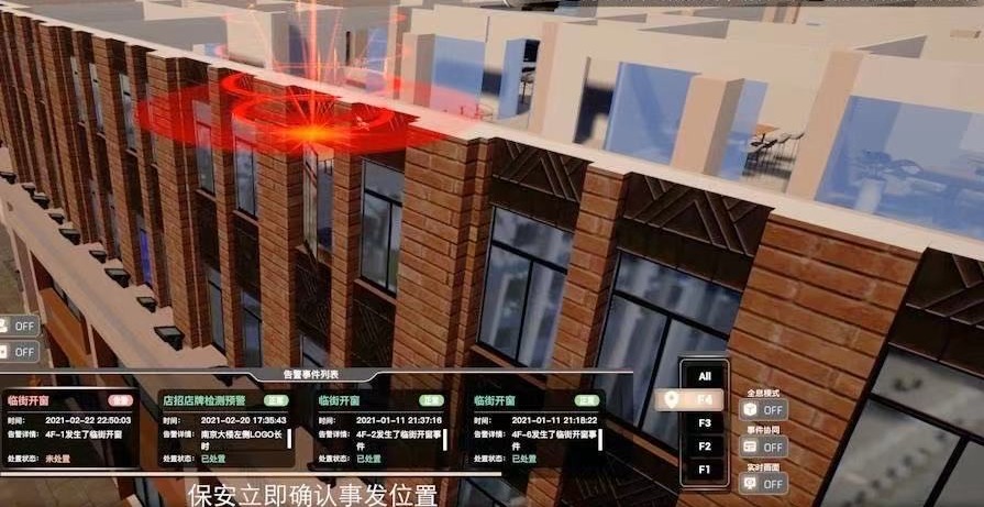 新华社上海2月26日电(记者周琳)近日,上海南京路步行街的百年历史建筑南京大楼三楼,一位顾客打开窗户,将手机探出窗外拍照。“这一举动可能带来高空坠物风险”,数字孪生系统第一时间监测到,并自动向店内保安手环告警,此时整座大楼的数字生命体征也发生变化。保安前往现场处置后,数字孪生系统随即显示窗户关闭,大楼数字生命体征恢复至健康状态。