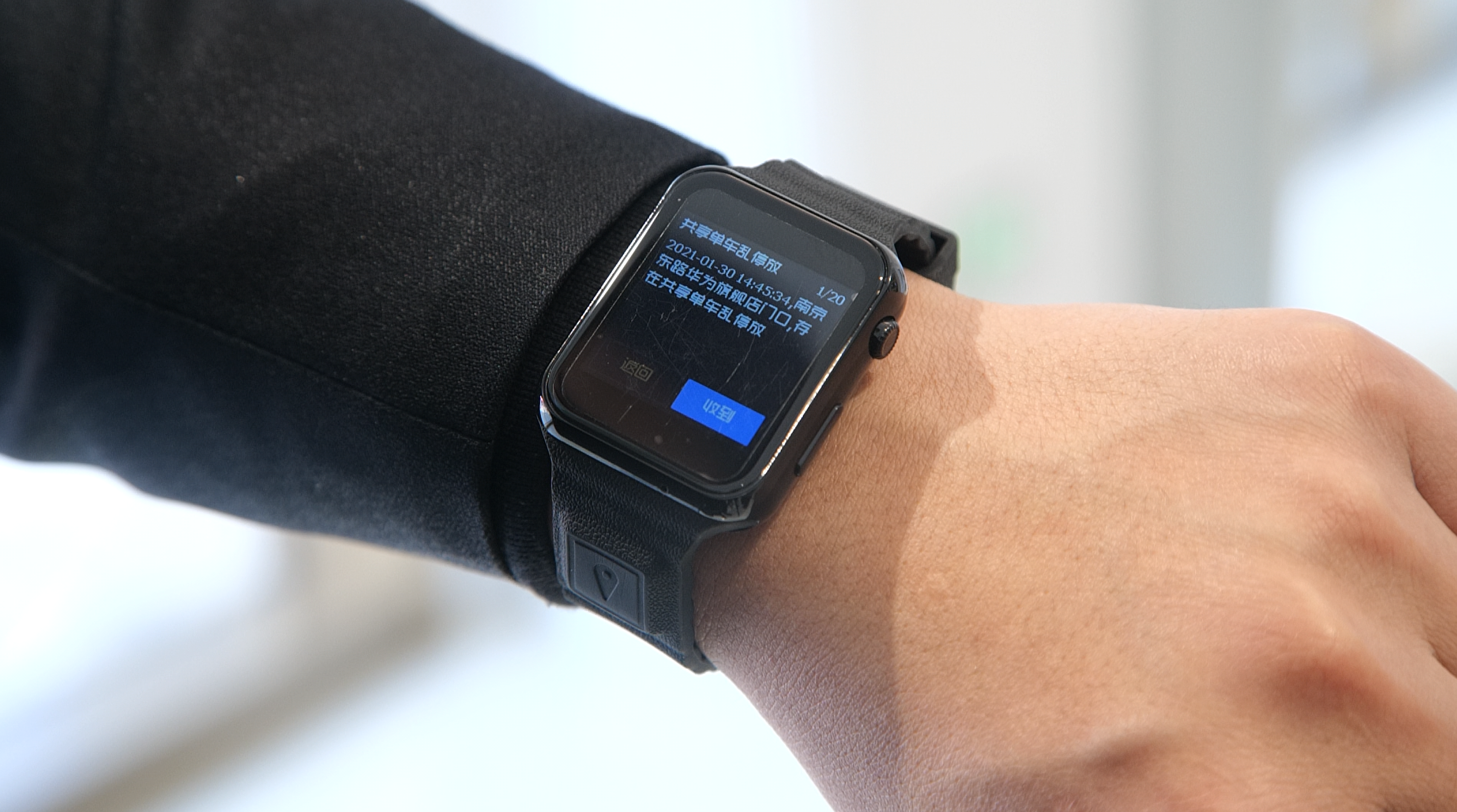 ↑保安展示智能设备接收到的城市运行事件提醒。(受访者供图)