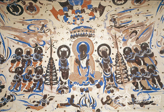 元宵节最初并没有灯会,东汉明帝在位期间佛教传入中国,他为了弘扬佛法,下令正月十五夜在宫中和寺院“燃灯表佛”,此后这一节俗逐渐兴起。到了唐朝,除了祈福的愿望,更有了狂欢的意味,皇帝们会斥巨资建灯轮、灯楼。所谓灯轮,从莫高窟壁画来看,是一种多层灯架,整体上看犹如一座佛塔;所谓灯楼,是用彩色绸帛结扎的棚架,用来悬挂灯笼。
