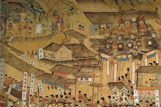 两宋时期的元宵节就更热闹了,与唐朝比起来,假期从三天增至五天,而且灯的种类极多,特别注重创新,每年都会推出新品,《乾淳岁时记》中特地介绍了冠于全国、来自苏州的苏灯,直径1米出头,通体用玉色琉璃制成,灯面饰有山水、人物、花鸟等图案。猜灯谜活动也在此时流行开来,"以绢灯剪写诗词,时寓讥笑,及画人物,藏头隐语,及旧京诨语,戏弄行人"。