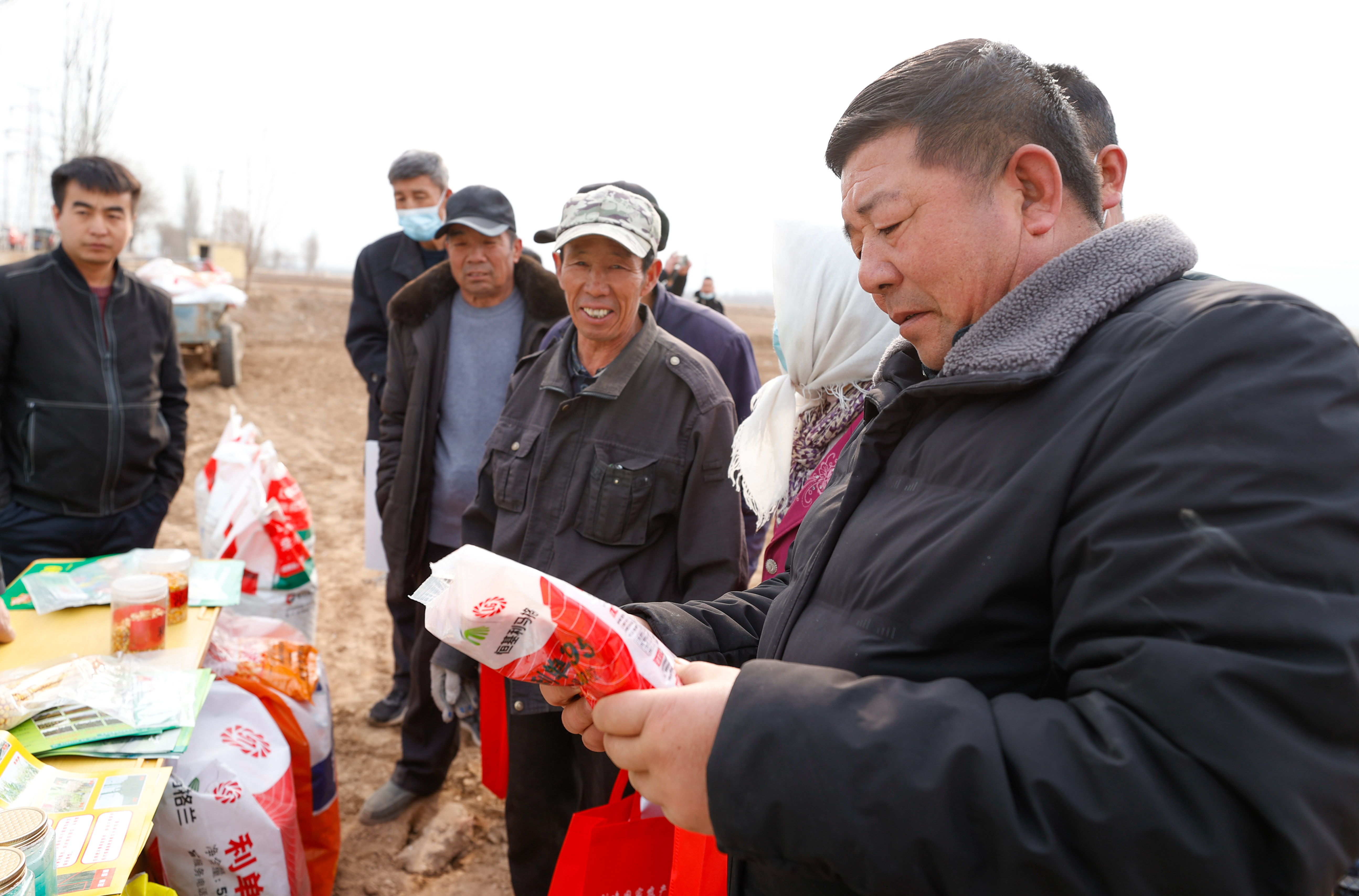 红星村的种植户们在查看农资经销商推介的产品。(新华社记者杨植森 摄)