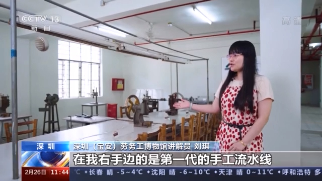 深圳(宝安)劳务工博物馆讲解员 刘琪:这里是全国第一批、深圳第一家“三来一补”企业,在我右手边的是第一代的手工流水线,1978年的生产线。